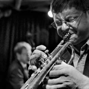 Peter Evans (pictured, photo by Thomas Lee) holds a degree in classical trumpet from Oberlin Conservatory. Evans is a frequent solo performer, and also plays with chamber orchestras, as well as free improvised settings, with a focus on electro-acoustic music, jazz and composition. He leads several groups, is a member of the International Contemporary Music Ensemble and Mostly Other People do the Killing, and collaborates with a wide variety of creative musicians in the US and Europe.